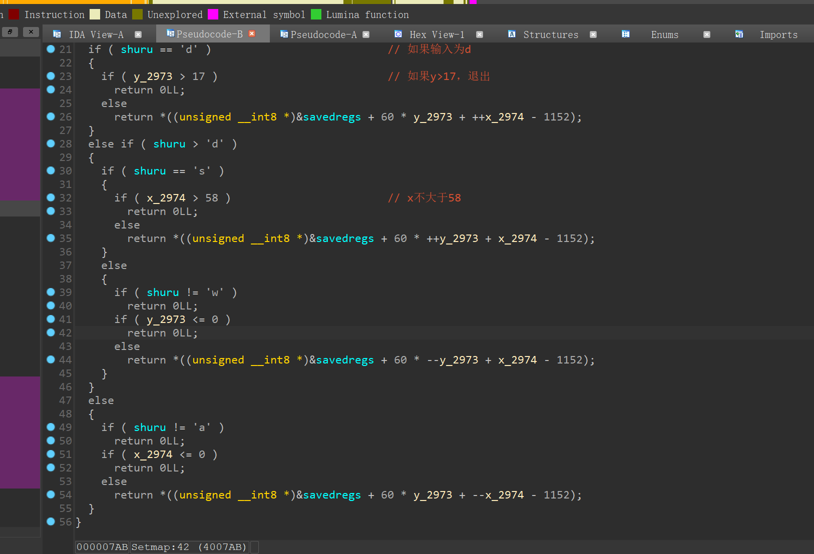输入wasd分别是在地图上上下左右移动,60是地图的列数,也就是y