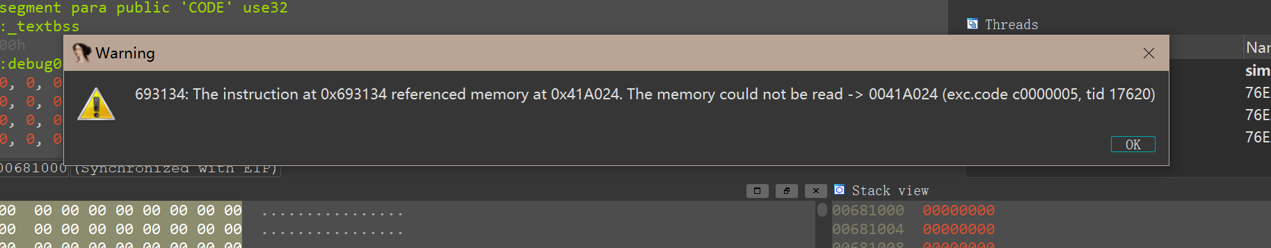某处指令调用内存0x41A024失败