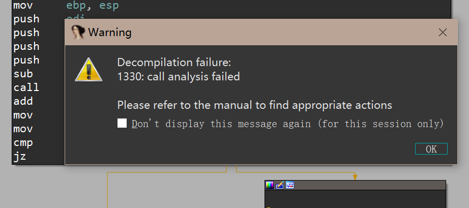 call 了一个寄存器值,这个值0FF7C958Dh已经超出地址范围了,先nop掉,反编译试试