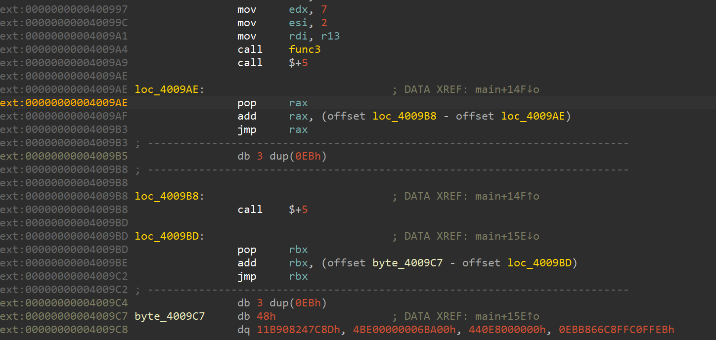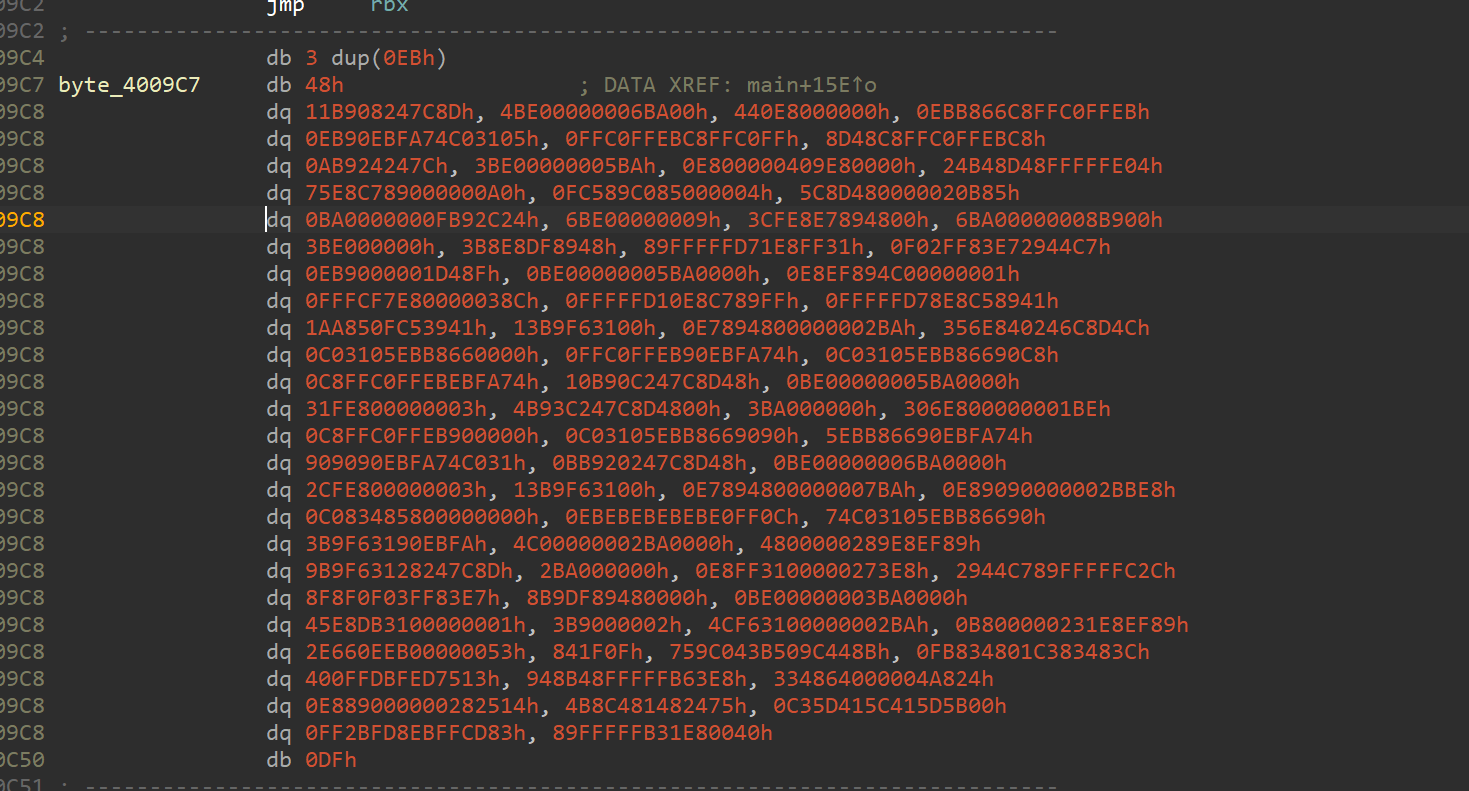1 | arr = [[0x4009A9,0x4009C7],[0x4009E0,0x4009FE],[0x400ACA,0x400AE8],[0x400B1A,0x400B38],[0x400B65,0x400B92],[0x400BEF,0x400C00]] |