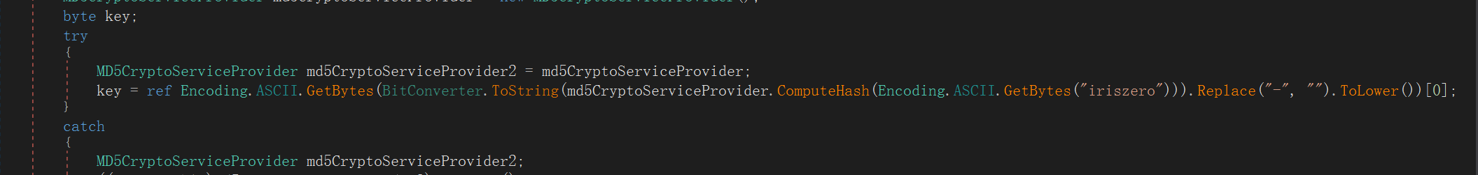 对iriszero进行md5加密,转小写,生成key