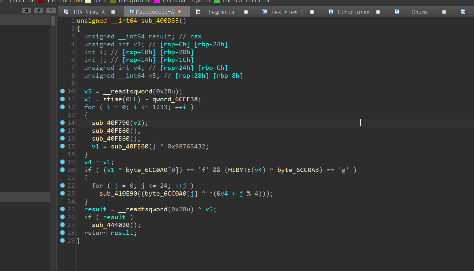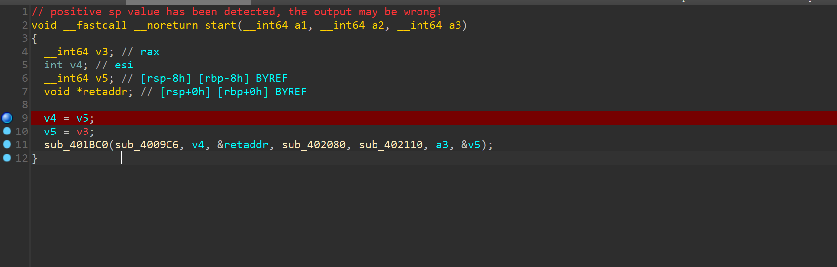 看这个标准的main函数格式,sub_4009C6 应该就是main函数