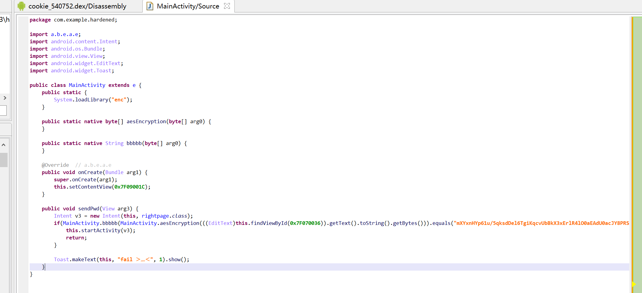 在540752的dex文件中捕捉到关键信息