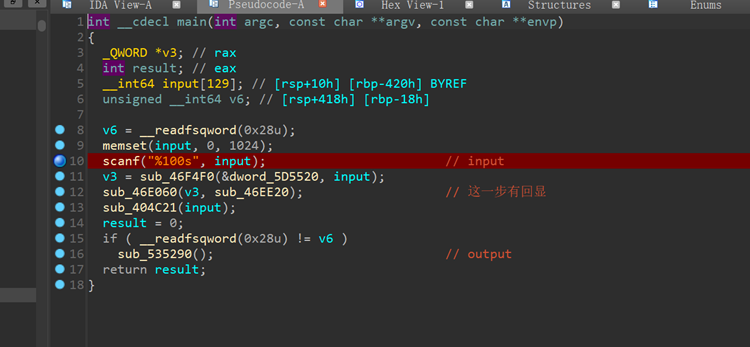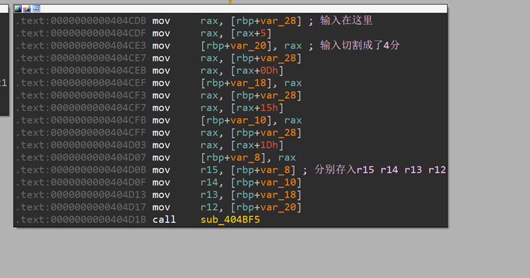 这里将所有输入传入r12 r13 之类的之后就没有处理了。 再回到main函数